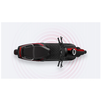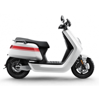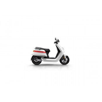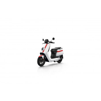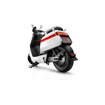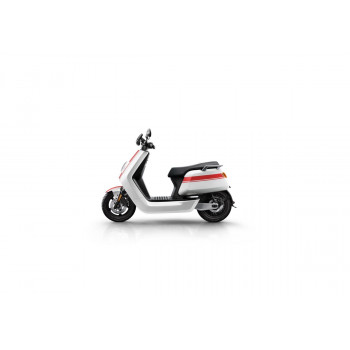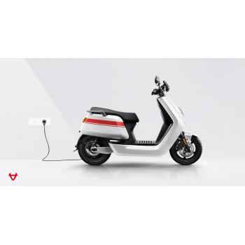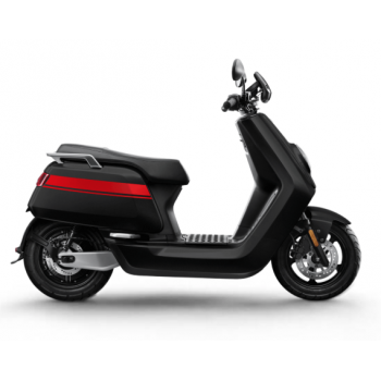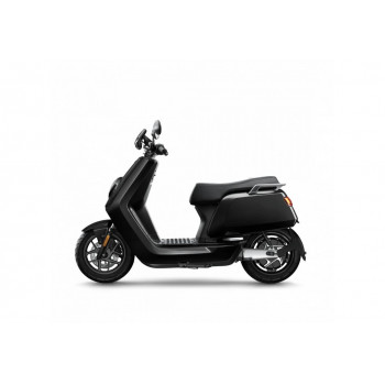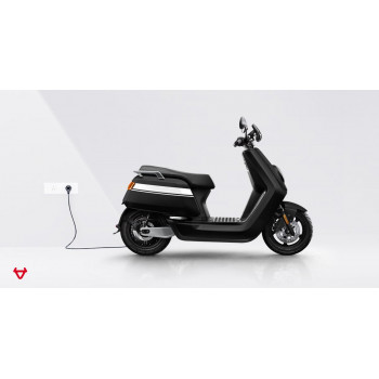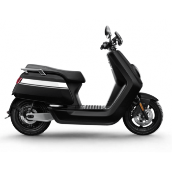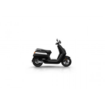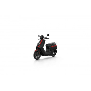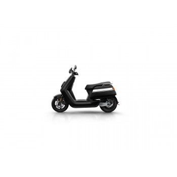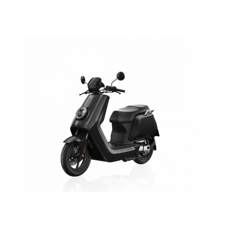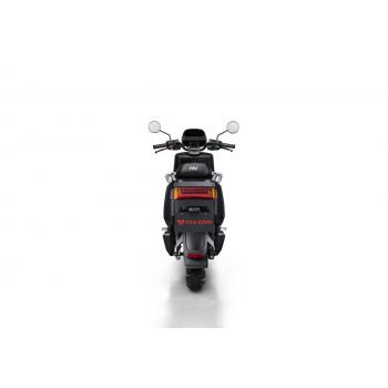 Smart elektrický skútr NIU v lesklé černé barvě pro dvě osoby, dual nabíjení 6 h (2 baterie), 14" kola, odnímatelný akumulátor 2× Lithium-Ion 60 V 26 Ah s BMS, rychlost 80 km/h, motor NIU V 4600 W, dojezd až 103 km v režimu E-Save, stoupání 32 %, 3 jízdní režimy (Sport, Dynamic, E-Save)